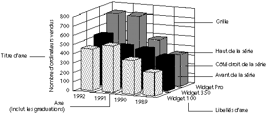 Note : Les séries des graphes 2D ont 1 côté (Avant) ; celles des graphes 3D peuvent afficher jusqu’à 3 côtés à la fois.