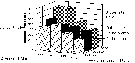 Hinweis: Reihen in 2D Diagrammen haben eine Seite (Front); Reihen in 3D Diagrammen können gleichzeitig bis zu drei Seiten anzeigen.