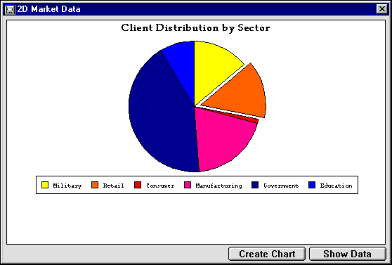 Con 4D Chart, usted hace el siguiente gráfico de sectores que ilustra el porcentaje de ventas cada sector.