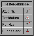 Ihre Datenbank enthält die Punktzahlen der Auszubildenden, sortiert nach Testdatum und Region.