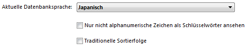 Sie können die Sortierfolge für Zeichen der japanischen Sprache über die neue Option Traditionelle Sortierfolge setzen: