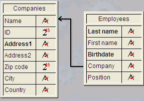 The properties of the relation linking the [Employees]Company field to the [Companies]Name field are the following: