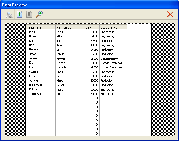 Este passo é obligatório se imprime registros em um relatório com quebras. Neste caso, deve ordenar os registros em ao menos um nivel a mais que o número de níveis do relatório. Para mais informação, consulte Formulários de relatórios impressão. - Escolha Imprimir no menu Arquivo.