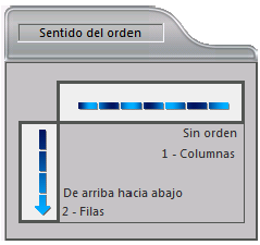 Para modificar o eliminar el sentido del orden de una fuente de datos, haga clic nuevamente. Aparecen sucesivamente los diferentes sentidos posibles. Cuando no se muestra una flecha, no se ha seleccionado ningún sentido de ordenación. En este caso, los valores se mostrarán en el orden en que aparecen en la selección.