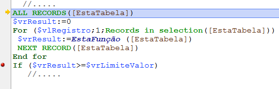 Agora, digamos que você está executando o código a seguir, com o contador de programa na linha ALL RECORDS([EstaTabela]):