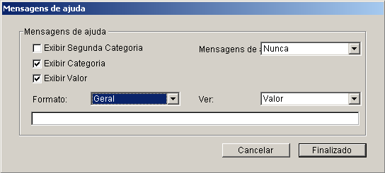 - Mensagens de ajuda (Nunca, Sempre e Sob petição): este parâmetro permite definir a visualização das mensagens de ajuda para o gráfico atual.