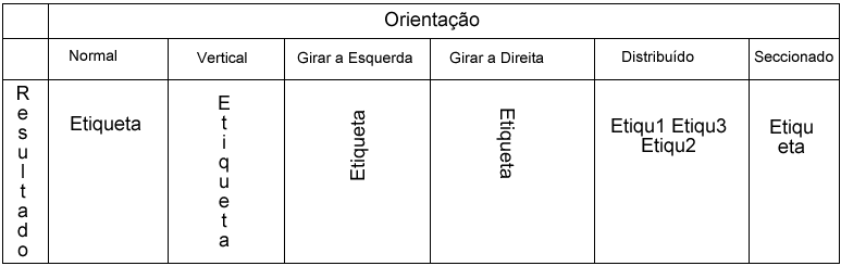 Orientação das etiquetas As orientações de etiquetas a seguir estão disponíveis para cada eixo:
