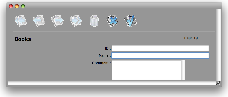 Botão barra de ferramentas (Mac OS): esta propriedade permite mostrar o botão de gestão da barra de ferramentas em Mac OS. Este botão padrão permite alternadamente mostrar ou ocultar a barra de ferramentas da janela: Utilize esta opção se criar a janela com o comando Open form window ou DIALOG por exemplo. Isto equivale a utilizar a constante Has toolbar button Mac OS com o comando Open window ou Open form window. Nota: o evento de formulário On Mac toolbar button se gera quando o usuário clicar no botão. É tarefa do desenvolvedor da interface especificar as ações a ser realizadas quando se clica no botão.