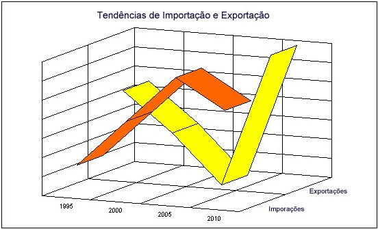 O eixo Z mostra os valores calculados para cada combinação de categoria e séries. No exemplo de venda de computadores, o eixo X terá o número de computadores vendidos de cada modelo, por ano. Por exemplo, se em 2001 foram vendidos 180 computadores CAIRO Pro, o valor correspondente do eixo Z no eixo X categoria “2001” e eixo Y série “CAIRO Pro”, será 180.