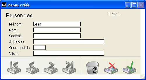 Un autre enregistrement vide s'affiche. L'utilisateur clique sur le bouton Annuler (celui qui comporte une croix) pour terminer la “boucle de saisie des données”. L’utilisateur retourne à l’écran principal.