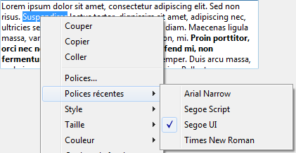 Vous souhaitez ajouter une police au menu des polices récentes :