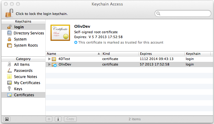 Nota: Este certificado requer a presença do utilitário codesign de Apple. Este utilitário se oferece por padrão e normalmente se encontra na pasta “/usr/bin/”. Se produz um erro, tenha a certeza de que este utilitário esteja presente em seu disco.