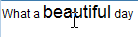 <SPAN STYLE="font-family:'Arial';font-size:9pt;text-align:left;font-weight:normal;font-style:normal;text-decoration:none;color:#000000;background-color:#FFFFFF">¡Qué <SPAN STYLE="font-size:13.5pt">hermoso</SPAN> día!</SPAN>