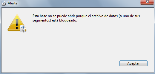 4D incluye un mecanismo que evita automáticamente la apertura de una base de datos cuando su archivo de datos o uno de sus segmentos, está bloqueado. En este caso, cuando la opción de detección está activada, 4D despliega un mensaje de alerta y no abre la base de datos: