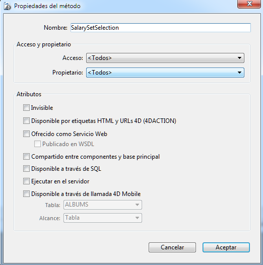Aparece la ventana “Propiedades del método”, permitiéndole modificar el nombre así como las otras propiedades del método.