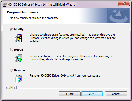 To remove a 4D ODBC Driver, simply launch the 4D ODBC Installer and choose the Remove option; the installer will take care of the rest: