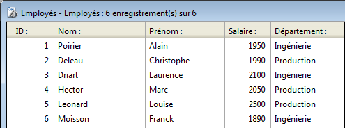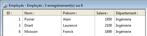Une fois que vous avez créé des enregistrements dans la table [Employés], vous pouvez effectuer des recherches, des tris, des impressions, etc., avec ces enregistrements. Par exemple, recherchons les employés du département Ingénierie :