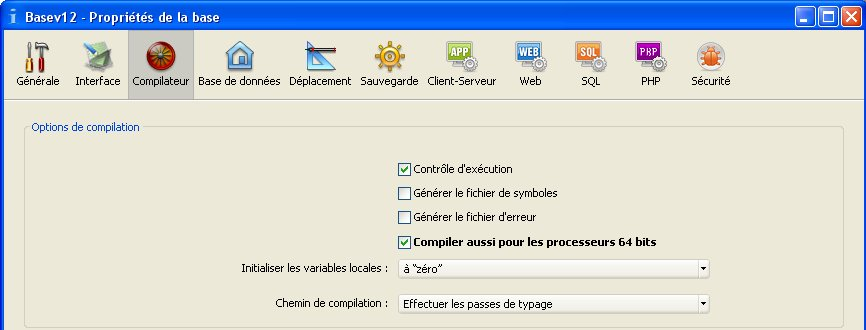 Note : Pour que vous puissiez compiler une base en 64 bits, elle doit fonctionner en mode Unicode. Dans le cas contraire, une erreur est générée à la compilation.