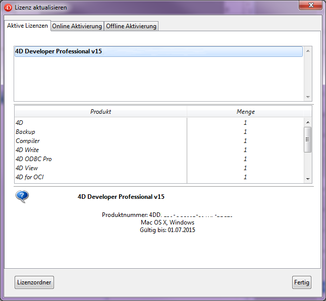 Haben Sie 4D auf Ihrer Festplatte installiert, müssen Sie das Produkt aktivieren, damit Sie es verwenden können. Die Aktivierung ist auch erforderlich, wenn Sie zusätzliche Lizenzen erwerben.