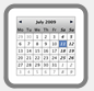 Adiciona um calendário associado a uma variável Date, que pode ser configurada com o fim de especificar os feriados, uma faixa de datas, etc.