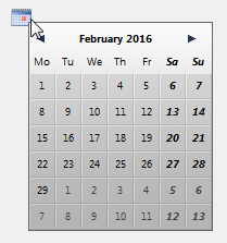 Adiciona uma área emergente utilizada para mostrar um calendário para selecionar datas. As datas selecionadas são atribuidas diretamente a variável Date variable associada a esta área.