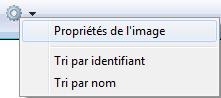 Vous pouvez trier les images par nom (par défaut) ou par numéro d’identification (aussi appelé identifiant) à l’aide du menu contextuel de la liste ou des commandes du bouton d’options :
