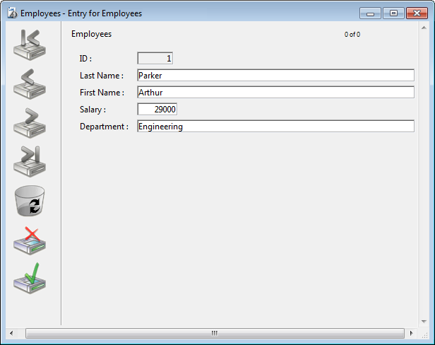 La petición se envía al 4D Server, luego 4D Server responde a 4D. El formulario de entrada muestra únicamente los empleados que trabajan en el departamento de Ingeniería.