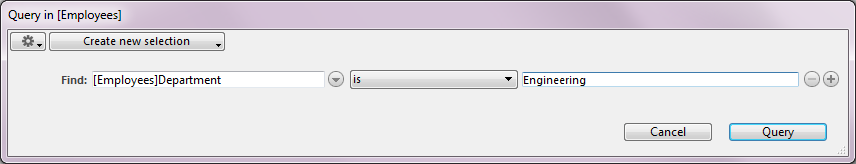 2. Conserve "[Empleados]Departamento" como criterio de búsqueda y “es” en la lista de comparadores, luego introduzca "Ingeniería":