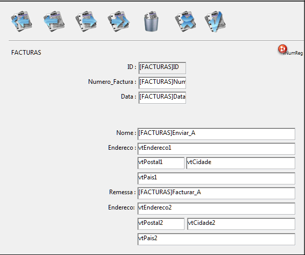 Aqui é o formulário para a tabela [Faturas] exibindo a informação "Bill to" e "Send to" :