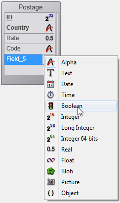 1. Haga clic en el icono del tipo de campo en la imagen de la tabla y elija el tipo que quiere en el menú asociado.