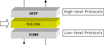 A nivel de la arquitectura de red, el protocolo de seguridad se inserta entre la capa TCP/IP (nivel bajo) y el protocolo de alto nivel HTTP, para el cual está destinado principalmente.