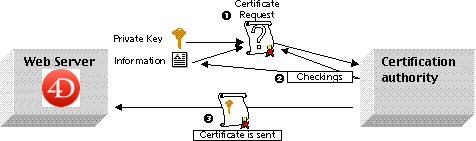 Para llenar la solicitud de certificación, necesita contactar la autoridad de certificación. La autoridad de certificación verifica que la información transmitida sea correcta. La solicitud del certificado se genera en un BLOB utilizando el formato PKCS codificado en base64 (formato PEM). Este principio autoriza copiar y pegar las llaves como texto y enviarlas vía e-mail con total seguridad sin modificar el contenido de la llave. Por ejemplo, puede guardar el BLOB que contiene la solicitud del certificado en un documento de texto (utilizando el comando BLOB TO DOCUMENT), luego abrir y copiar y pegar su contenido en un email o formulario web a enviar a la autoridad de certificación.