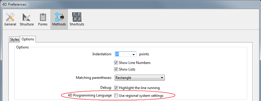Nota: en versiones anteriores de 4D, y en 4D v15 cuando esta nueva preferencia está seleccionada, los formatos de fecha y real se basan en la configuración del sistema.