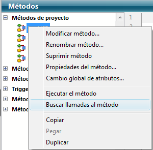Nota: el comando Buscar llamadas al método... también está disponible en el menú Método del Editor de métodos