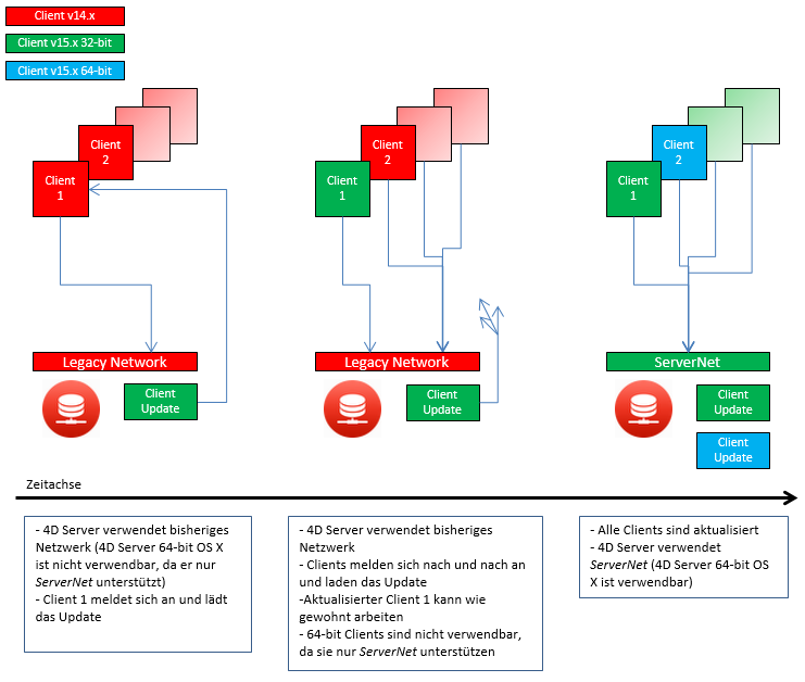 - Clients in Version 4D v15 (oder ab 4D v14 R4) und neuer können sich ohne Änderung anmelden