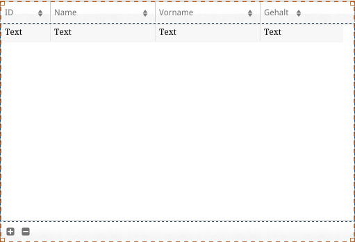 Beachten Sie das kleingeschriebene "a" für "Angestellte"; wir verwenden die Datasource, die beim Zuweisen der Klasse zum Widget automatisch erstellt wurde. - Klicken Sie in der Toolbar des Editors auf das Icon