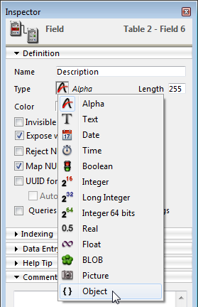 A partir de4Dv15,um novo tipo decampo objetoé suportada pelosdados do motorde banco de dados4D.