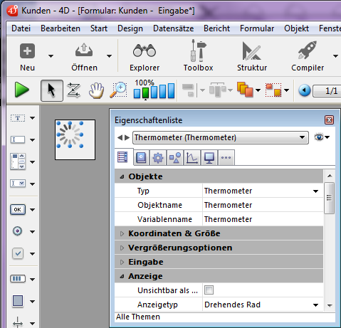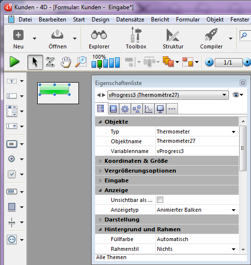 Fügt einen asynchronen Ablaufbalken mit einer numerischen Variable hinzu. Er wird animiert, wenn der Wert der Variablen größer als Null ist. Sie können seine Darstellung per Programmierung ändern.