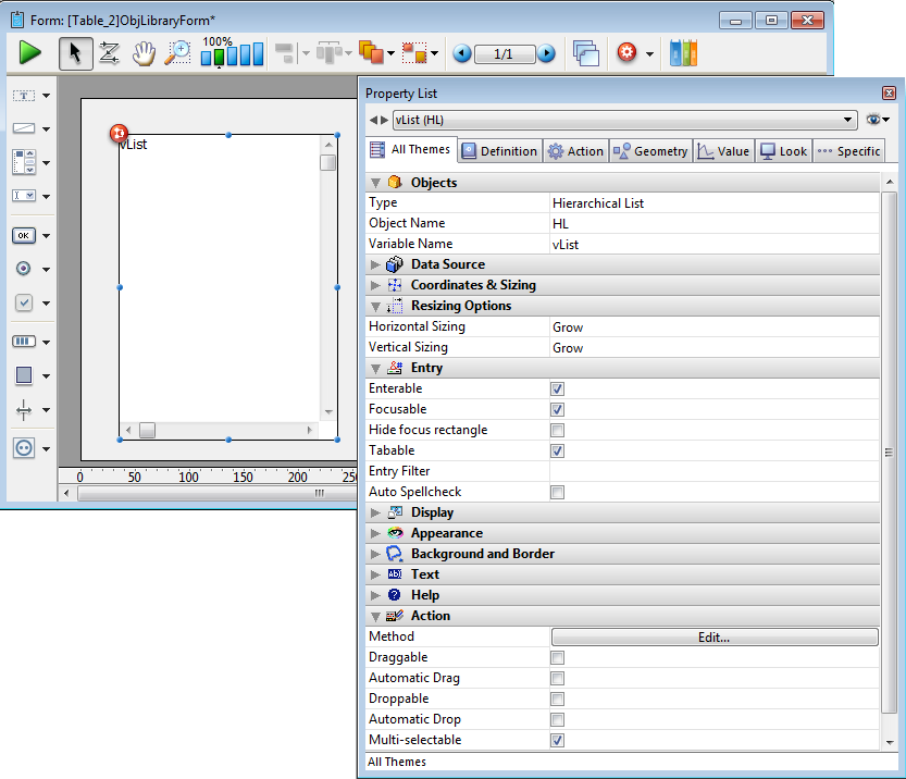 Ao deixar cair este objeto em um formulàrio insere automaticamente uma área 4D Write Pro com um subformulàrio associado 4D Write Pro Widget que contenha os painéis de controle para gerenciar o conteùdo da área: