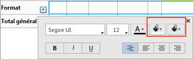 Lorsque vous construisez votre état rapide, vous pouvez spécifier les polices, tailles, justifications, styles et couleurs de caractères et de fond pour chaque cellule. Vous pouvez appliquer ces paramétrages au niveau des lignes, colonnes ou cellules de l’état. Ils seront pris en compte pour le texte, les données et les valeurs calculées.
