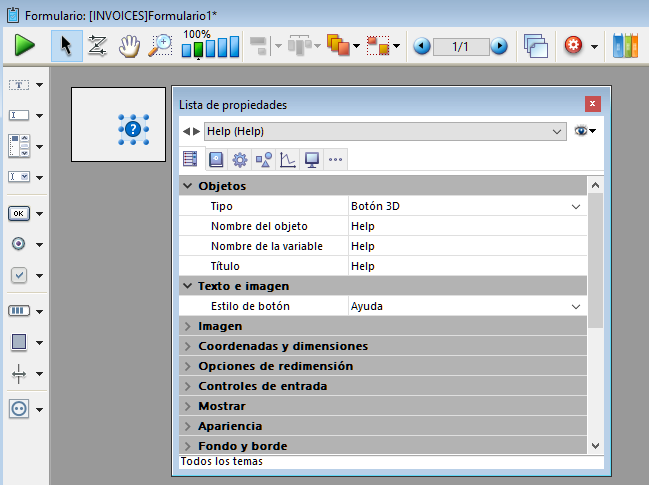Añade un botón  3D de tipo ayuda, cuya apariencia ha sido preformateada. Puede utilizar la lista de propiedades para modificar sus propiedades.