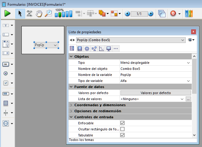 Para más información acerca del uso de menús pop-up en formularios, consulte Pop-ups/Listas desplegables.