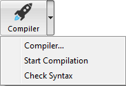 コンパイラーウインドウを表示するには、デザインメニューのシンタックスチェック...コマンドを選択するか、またはデザインモードのツールバーにあるコンパイラーボタンをクリックします: