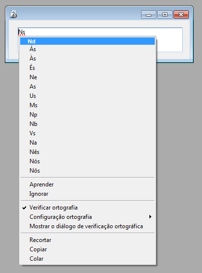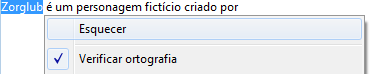 Para mostrar as opções de correção ortográfica, pode fazer clique direito sobre uma palavra desconhecida e aparecerá um menu contextual que contém os comandos de correção ortográfica: