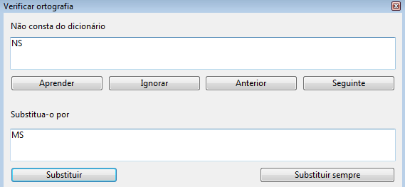 O usuário pode então corrigir o texto usando o menu contextual (clique direito na palavra sublinhada) ou utilizar o quadro de diálogo do corretor ortográfico.