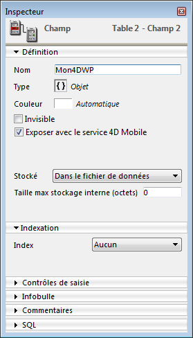 Votre zone 4D Write Pro est alors associée au champ de type Objet,
