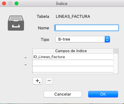 • Tabela: pronta todas as tabelas do banco. Escolha neste menu a tabela a qual pertencerá o índice.