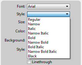 ![]() | Plain, Bold, Italics, Underline and Strikethrough style buttons. |