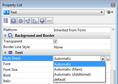 A folha de estilo Automatic é aplicada como padrão para qualquer novo objeto criado no editor de Formulário.