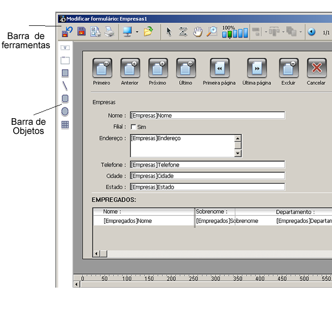 Para uma descrição do editor de formulário de 4D, consulte  Editor de formulários.